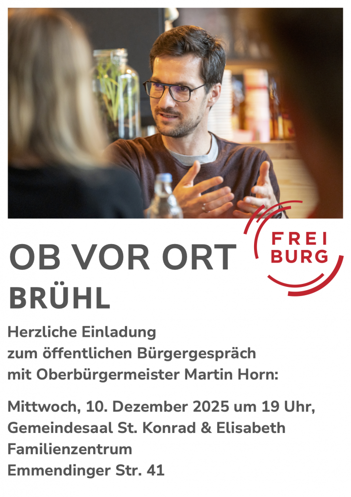 Oberbürgermeister Horn besucht Brühl zum öffentlichen Bürgergespräch im Gemeindesaal St. Konrad und Elisabeth am 10. Dezember 2025.